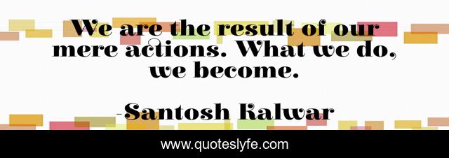 This page presents the quote "We are the result of our mere actions. What we do, we become.". Author of this quote is Santosh Kalwar. This quote is about action, life,.