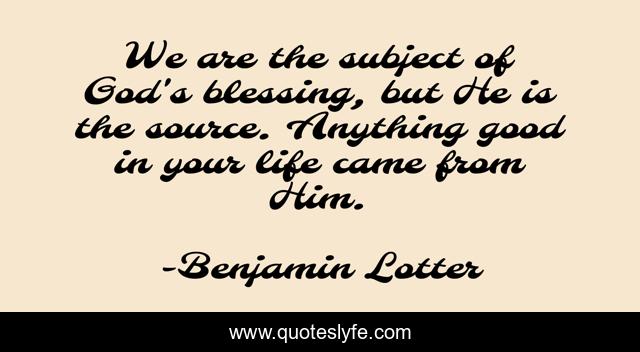 This page presents the quote "We are the subject of God's blessing, but He is the source. Anything good in your life came from Him.". Author of this quote is Benjamin Lotter. .
