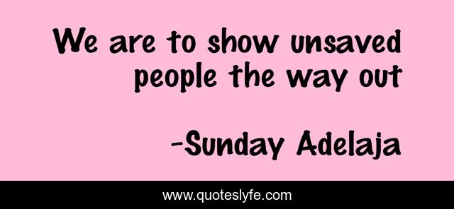 This page presents the quote "We are to show unsaved people the way out". Author of this quote is Sunday Adelaja. This quote is about pray, light, direction,.