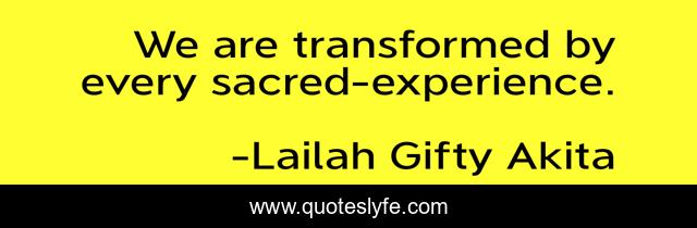"Lailah Gifty Akita Quotes." Quoteslyfe.com, 2025. Sat. 06 Dec. 2025. <https://www.quoteslyfe.com/quote/We-are-transformed-by-every-sacred-experience-60414>.