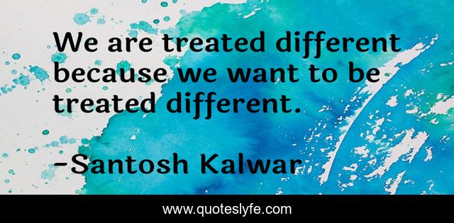 "Santosh Kalwar Quotes." Quoteslyfe.com, 2025. Fri. 05 Dec. 2025. <https://www.quoteslyfe.com/quote/We-are-treated-different-because-we-want-37421>.