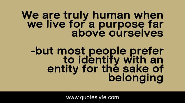 This page presents the quote "We are truly human when we live for a purpose far above ourselves". Author of this quote is but most people prefer to identify with an entity for the sake of belonging. .