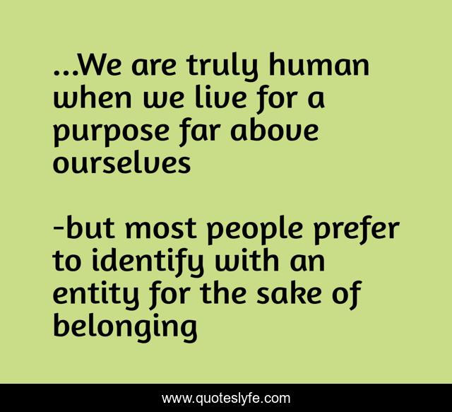 This page presents the quote "...We are truly human when we live for a purpose far above ourselves". Author of this quote is but most people prefer to identify with an entity for the sake of belonging. .