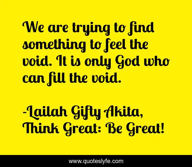 "Lailah Gifty Akita, Think Great: Be Great! Quotes." Quoteslyfe.com, 2025. Fri. 05 Dec. 2025. <https://www.quoteslyfe.com/quote/We-are-trying-to-find-something-to-85004>.