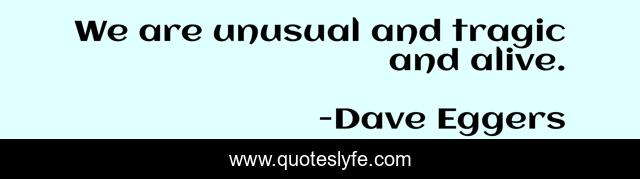 This page presents the quote "We are unusual and tragic and alive.". Author of this quote is Dave Eggers. .