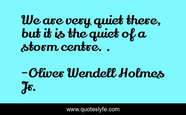 This page presents the quote "We are very quiet there, but it is the quiet of a storm centre. .". Author of this quote is Oliver Wendell Holmes Jr.. This quote is about leadership, decisions,.