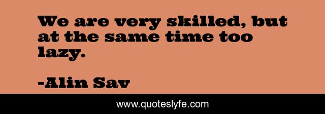 This page presents the quote "We are very skilled, but at the same time too lazy.". Author of this quote is Alin Sav. This quote is about positive, confidence, motivational, optimistic, leadership,.