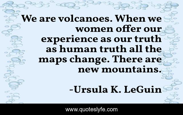 "Ursula K. LeGuin Quotes." Quoteslyfe.com, 2025. Sun. 07 Dec. 2025. <https://www.quoteslyfe.com/quote/We-are-volcanoes-When-we-women-offer-276025>.