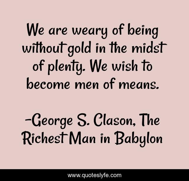 "George S. Clason, The Richest Man in Babylon Quotes." Quoteslyfe.com, 2025. Mon. 08 Dec. 2025. <https://www.quoteslyfe.com/quote/We-are-weary-of-being-without-gold-127751>.