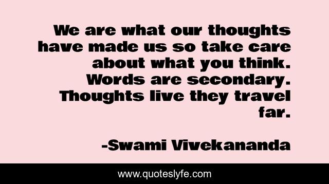 This page presents the quote "We are what our thoughts have made us so take care about what you think. Words are secondary. Thoughts live they travel far.". Author of this quote is Swami Vivekananda. This quote is about thoughts, words, wisdom,.