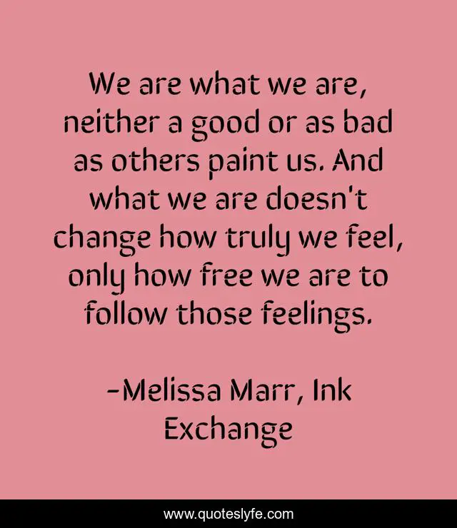 This page presents the quote "We are what we are, neither a good or as bad as others paint us. And what we are doesn't change how truly we feel, only how free we are to follow those feelings.". Author of this quote is Melissa Marr, Ink Exchange. This quote is about interesting, inspirational, enthusiasm,.