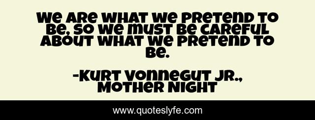 This page presents the quote "We are what we pretend to be, so we must be careful about what we pretend to be.". Author of this quote is Kurt Vonnegut Jr., Mother Night. This quote is about life, pretend, choice, behaviour, imagination, attitude, action, inspiration,.