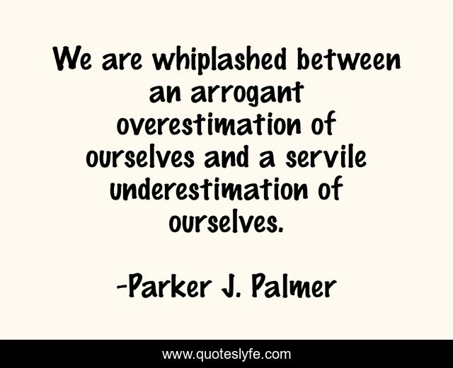 This page presents the quote "We are whiplashed between an arrogant overestimation of ourselves and a servile underestimation of ourselves.". Author of this quote is Parker J. Palmer. .