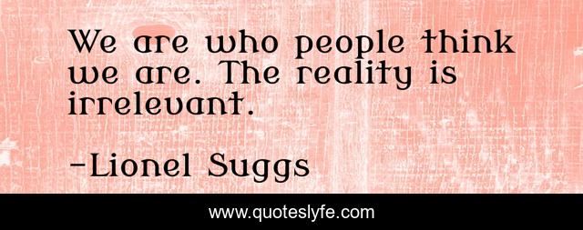 This page presents the quote "We are who people think we are. The reality is irrelevant.". Author of this quote is Lionel Suggs. This quote is about perception, realization,.