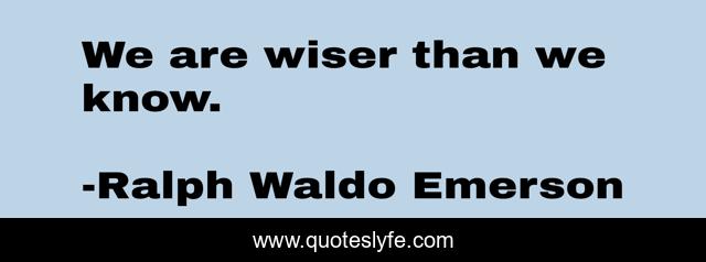 This page presents the quote "We are wiser than we know.". Author of this quote is Ralph Waldo Emerson. .