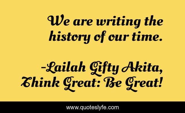 "Lailah Gifty Akita, Think Great: Be Great! Quotes." Quoteslyfe.com, 2025. Sun. 07 Dec. 2025. <https://www.quoteslyfe.com/quote/We-are-writing-the-history-of-our-92682>.
