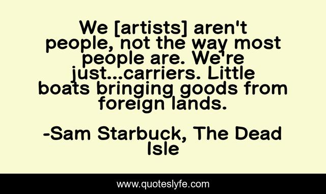 This page presents the quote "We [artists] aren't people, not the way most people are. We're just...carriers. Little boats bringing goods from foreign lands.". Author of this quote is Sam Starbuck, The Dead Isle. This quote is about boats, soul, artists,.