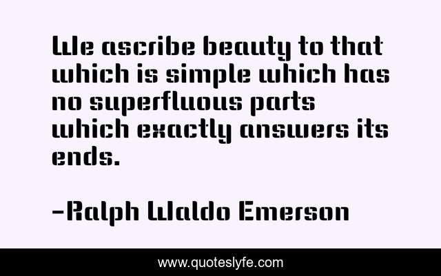This page presents the quote "We ascribe beauty to that which is simple which has no superfluous parts which exactly answers its ends.". Author of this quote is Ralph Waldo Emerson. .