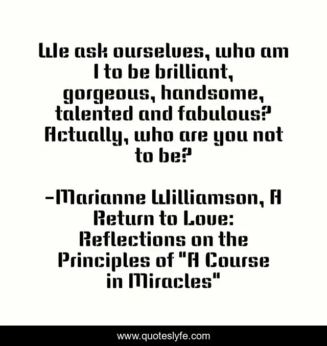 "Marianne Williamson, A Return to Love: Reflections on the Principles of "A Course in Miracles" Quotes." Quoteslyfe.com, 2025. Sat. 06 Dec. 2025. <https://www.quoteslyfe.com/quote/We-ask-ourselves-who-am-I-to-4290>.