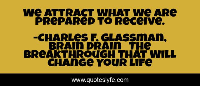 This page presents the quote "We attract what we are prepared to receive.". Author of this quote is Charles F. Glassman, Brain Drain The Breakthrough That Will Change Your Life. This quote is about faith, life, love, belief, relationship, law-of-attraction, success, law-of-attraction-books, positive-thinking,.