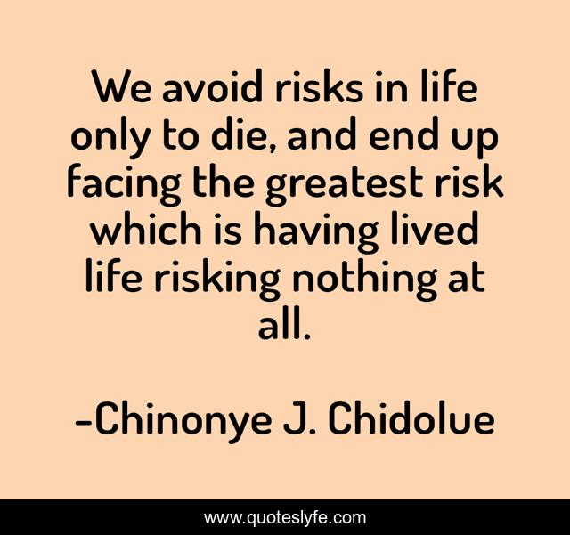 "Chinonye J. Chidolue Quotes." Quoteslyfe.com, 2025. Fri. 05 Dec. 2025. <https://www.quoteslyfe.com/quote/We-avoid-risks-in-life-only-to-48038>.