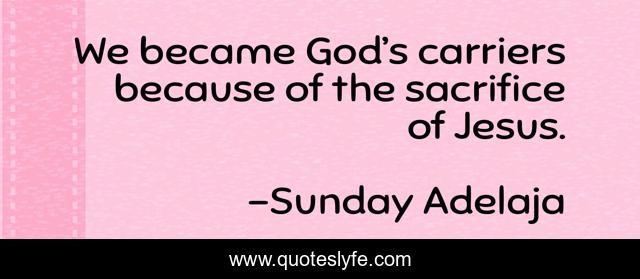 This page presents the quote "We became God’s carriers because of the sacrifice of Jesus.". Author of this quote is Sunday Adelaja. .