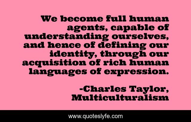 "Charles Taylor, Multiculturalism Quotes." Quoteslyfe.com, 2025. Mon. 08 Dec. 2025. <https://www.quoteslyfe.com/quote/We-become-full-human-agents-capable-of-141564>.
