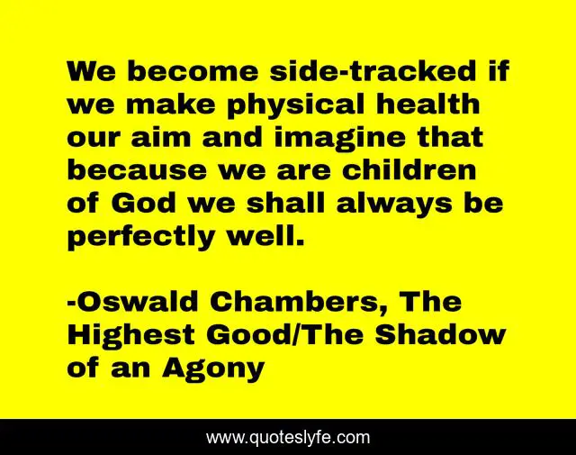 This page presents the quote "We become side-tracked if we make physical health our aim and imagine that because we are children of God we shall always be perfectly well.". Author of this quote is Oswald Chambers, The Highest Good/The Shadow of an Agony. .