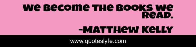 This page presents the quote "We become the books we read.". Author of this quote is Matthew Kelly. This quote is about character-development, books, reading,.