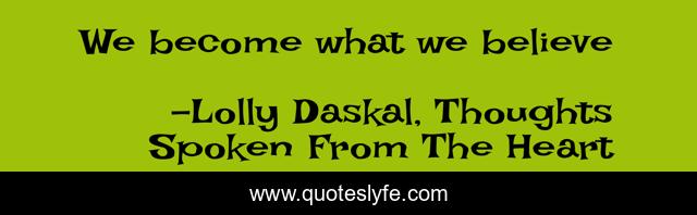 "Lolly Daskal, Thoughts Spoken From The Heart Quotes." Quoteslyfe.com, 2025. Sun. 07 Dec. 2025. <https://www.quoteslyfe.com/quote/We-become-what-we-believe-111555>.