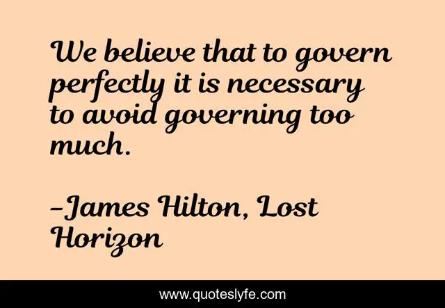 "James Hilton, Lost Horizon Quotes." Quoteslyfe.com, 2025. Mon. 08 Dec. 2025. <https://www.quoteslyfe.com/quote/We-believe-that-to-govern-perfectly-it-241738>.