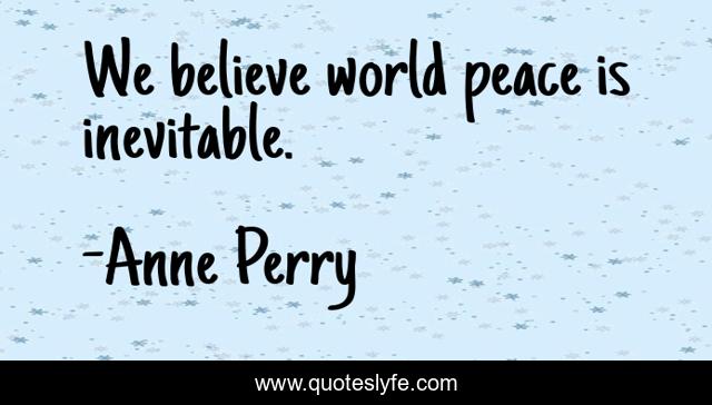 This page presents the quote "We believe world peace is inevitable.". Author of this quote is Anne Perry. This quote is about world, believe, world peace,.