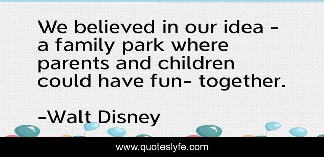 This page presents the quote "We believed in our idea - a family park where parents and children could have fun- together.". Author of this quote is Walt Disney. This quote is about parents, children, together,.