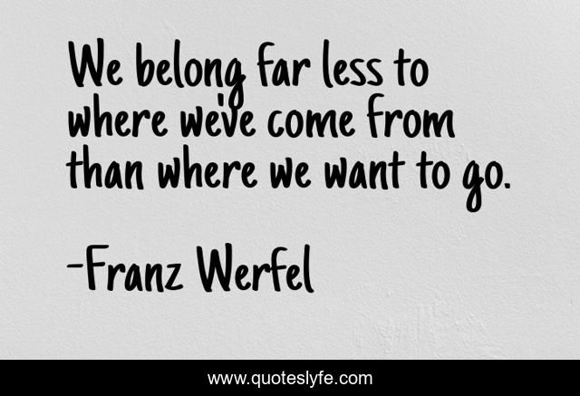 This page presents the quote "We belong far less to where we've come from than where we want to go.". Author of this quote is Franz Werfel. This quote is about aspiration, journey, belonging,.