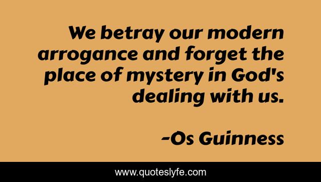 This page presents the quote "We betray our modern arrogance and forget the place of mystery in God's dealing with us.". Author of this quote is Os Guinness. This quote is about mystery, life, god, the-call, os-guinness, religion, truth,.