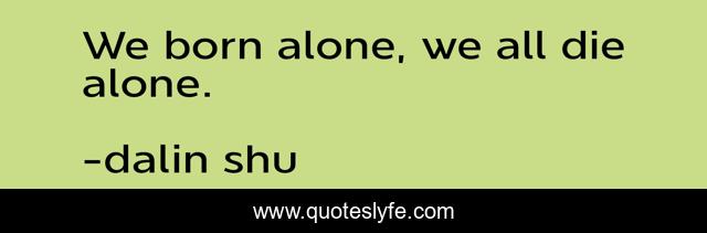 "dalin shu Quotes." Quoteslyfe.com, 2025. Sat. 06 Dec. 2025. <https://www.quoteslyfe.com/quote/We-born-alone-we-all-die-alone-192903>.