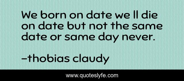 This page presents the quote "We born on date we ll die on date but not the same date or same day never.". Author of this quote is thobias claudy. This quote is about date, death, day,.