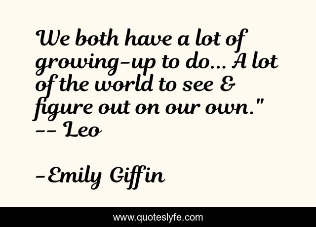 This page presents the quote "We both have a lot of growing-up to do... A lot of the world to see & figure out on our own." -- Leo". Author of this quote is Emily Giffin. This quote is about maturity, realization, inspirational, enthusiasm,.