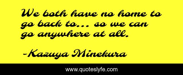 "Kazuya Minekura Quotes." Quoteslyfe.com, 2025. Fri. 05 Dec. 2025. <https://www.quoteslyfe.com/quote/We-both-have-no-home-to-go-54554>.