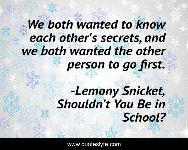 This page presents the quote "We both wanted to know each other's secrets, and we both wanted the other person to go first.". Author of this quote is Lemony Snicket, Shouldn't You Be in School?. .