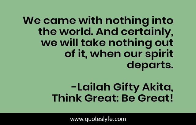 "Lailah Gifty Akita, Think Great: Be Great! Quotes." Quoteslyfe.com, 2025. Sat. 06 Dec. 2025. <https://www.quoteslyfe.com/quote/We-came-with-nothing-into-the-world-78495>.