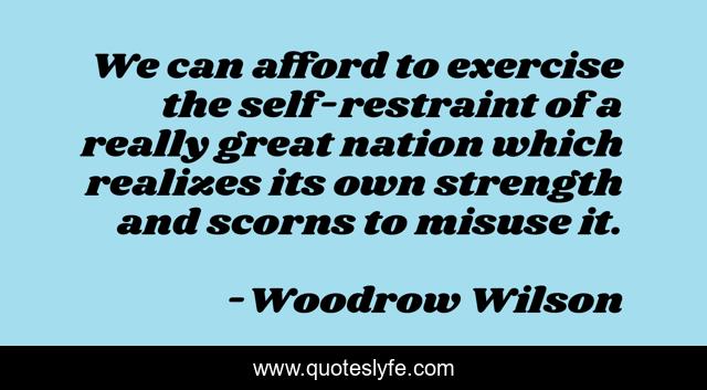 This page presents the quote "We can afford to exercise the self-restraint of a really great nation which realizes its own strength and scorns to misuse it.". Author of this quote is Woodrow Wilson. This quote is about strength-of-character, responsibility,.