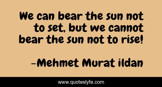 This page presents the quote "We can bear the sun not to set, but we cannot bear the sun not to rise!". Author of this quote is Mehmet Murat ildan. .