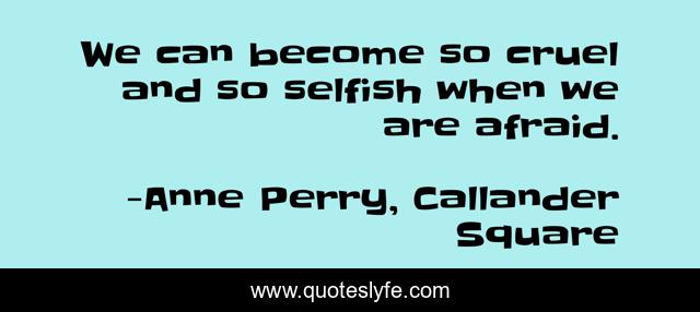 This page presents the quote "We can become so cruel and so selfish when we are afraid.". Author of this quote is Anne Perry, Callander Square. .