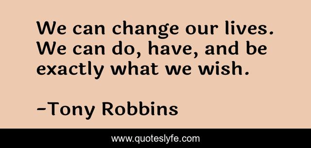 This page presents the quote "We can change our lives. We can do, have, and be exactly what we wish.". Author of this quote is Tony Robbins. This quote is about wish, our lives, change,.