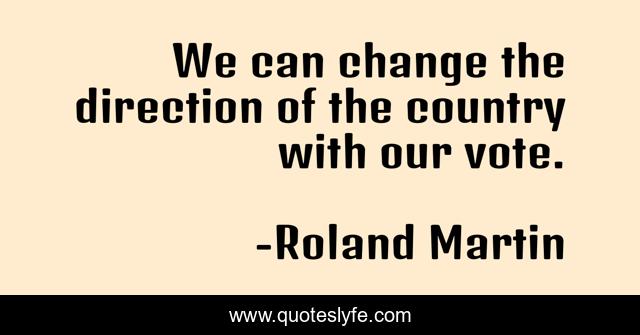 This page presents the quote "We can change the direction of the country with our vote.". Author of this quote is Roland Martin. This quote is about vote, country, direction,.