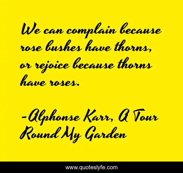 "Alphonse Karr, A Tour Round My Garden Quotes." Quoteslyfe.com, 2025. Sun. 07 Dec. 2025. <https://www.quoteslyfe.com/quote/We-can-complain-because-rose-bushes-have-94577>.