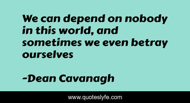 This page presents the quote "We can depend on nobody in this world, and sometimes we even betray ourselves". Author of this quote is Dean Cavanagh. This quote is about trust, betrayal,.