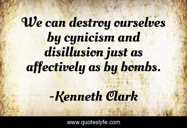 "Kenneth Clark Quotes." Quoteslyfe.com, 2025. Sun. 07 Dec. 2025. <https://www.quoteslyfe.com/quote/We-can-destroy-ourselves-by-cynicism-and-273348>.