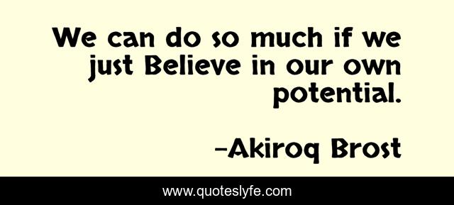 This page presents the quote "We can do so much if we just Believe in our own potential.". Author of this quote is Akiroq Brost. This quote is about inspiring, potential, belief, perspective,.